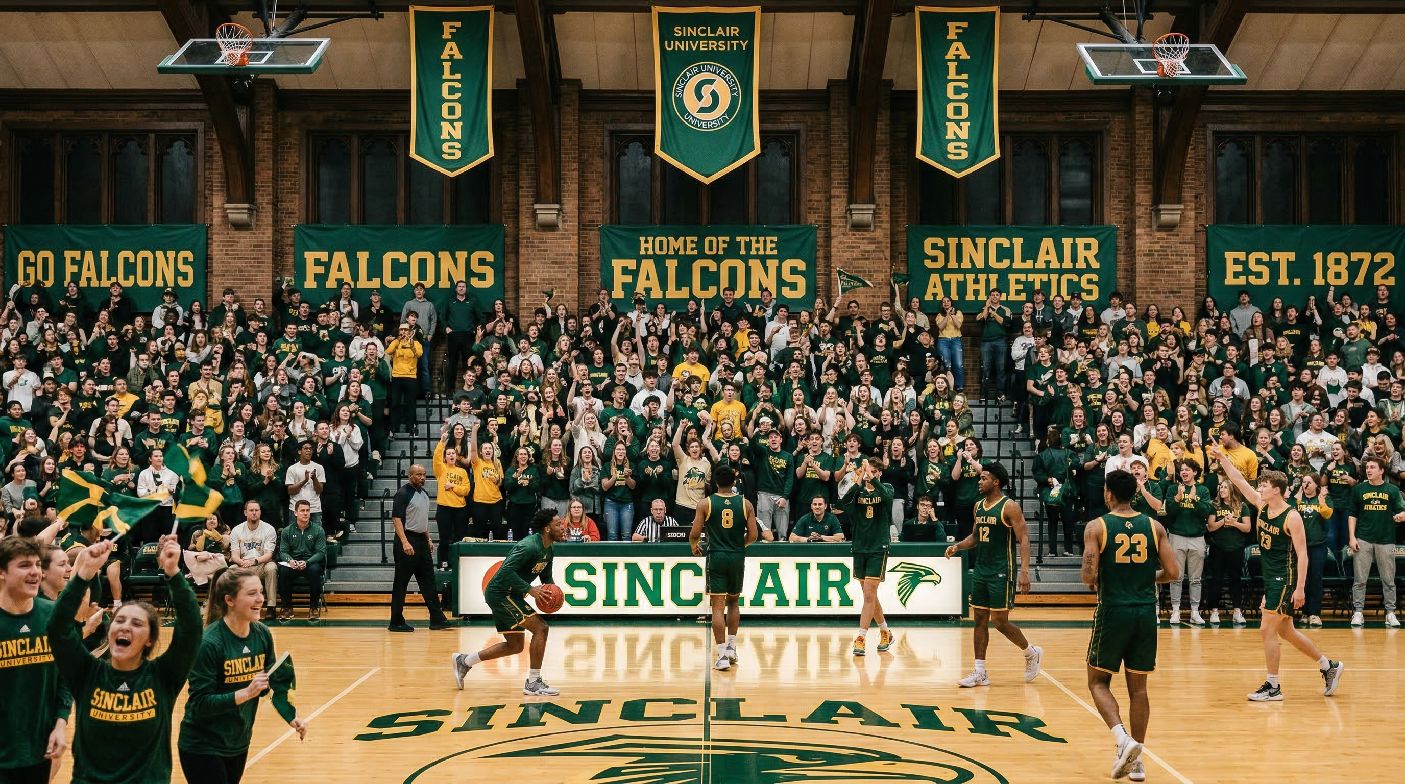 The Falcons compete with intensity, but Sinclair's athletics culture is defined just as much by sportsmanship, academic balance, and shared campus tradition. Basketball nights at Centennial Athletic Center are especially beloved, drawing students, alumni, and local families.